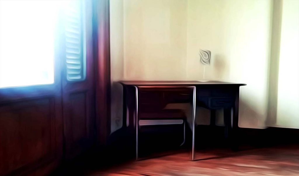 SOLS EN BOIS, LIT DOUBLE, BUREAU ET ARMOIRE