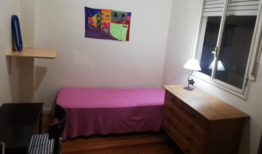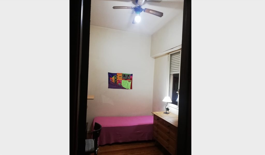 Habitación muy acogedora. Es interna con una gran ventanal. Es una habitación ideal para una chica o mujer que trabaja afuera, que no está mucho en casa. Tiene mobiliario completo y todas las comodidades para cosas personales, Ventilador de techo. El departamento es muy grande y hermoso, con lindos lugares de estar donde tambien se puede trabajar. WIFI de Alta Velocidad, Cocina comedor muy luminosa y completa, Living comedor con sillones etc. Lavadero, 2 baños. El piso es muy tranquilo y las chicas agradables y respetuosas. Garage de pago en la puerta. Metribus en la puerta, 6 lineas de Subte cerca. Cualquier duda no dudes en preguntar. Maia
