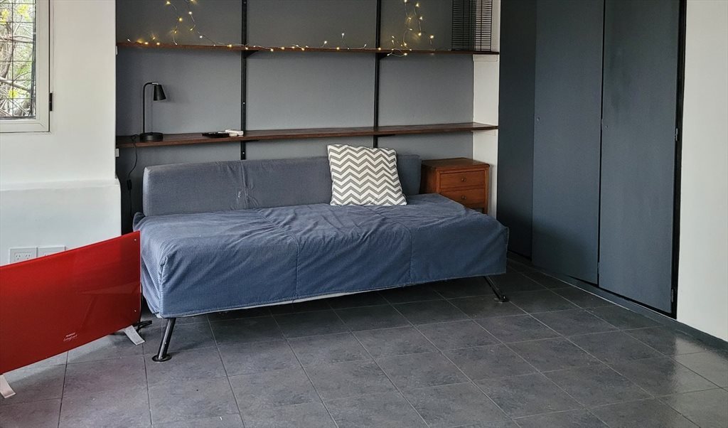 La habitación se encuentra ubicada en la terraza del domicilio, es decir que posee mucha privacidad y también posee un baño privado en suite que solo es utilizado por la persona que alquila la habitación. En las fotos todavia no estaban colocadas las cortinas pero ahora si hay cortinas blancas en todas las ventanas. El huesped puede utilizar libremente la terraza de la casa y obviamente la habitación. Dentro de la habitación se cuenta con todos los elementos para cocinar y lavar los elementos de cocina. Si el huesped lo desea puede darme la ropa para lavar y yo se la lavo y se la seco por un costo extra de $4.000 pesos (4 USD). No se puede traer invitados a la residencia.La ubicación de la residencia es excelente ya que se encuentra a 1 cuadra de distancia de un hipermercado y a 2 cuadras de distancia de un Mall muy grande, como así también posee una estación de metro a 2 cuadras y varias lineas de bus tambien a muy pocas cuadras de distancia. Se encuentra muy cerca del conocido barrio de Palermo y del Centro de la Ciudad. A continuación especifico los elementos con los que cuenta la habitación: