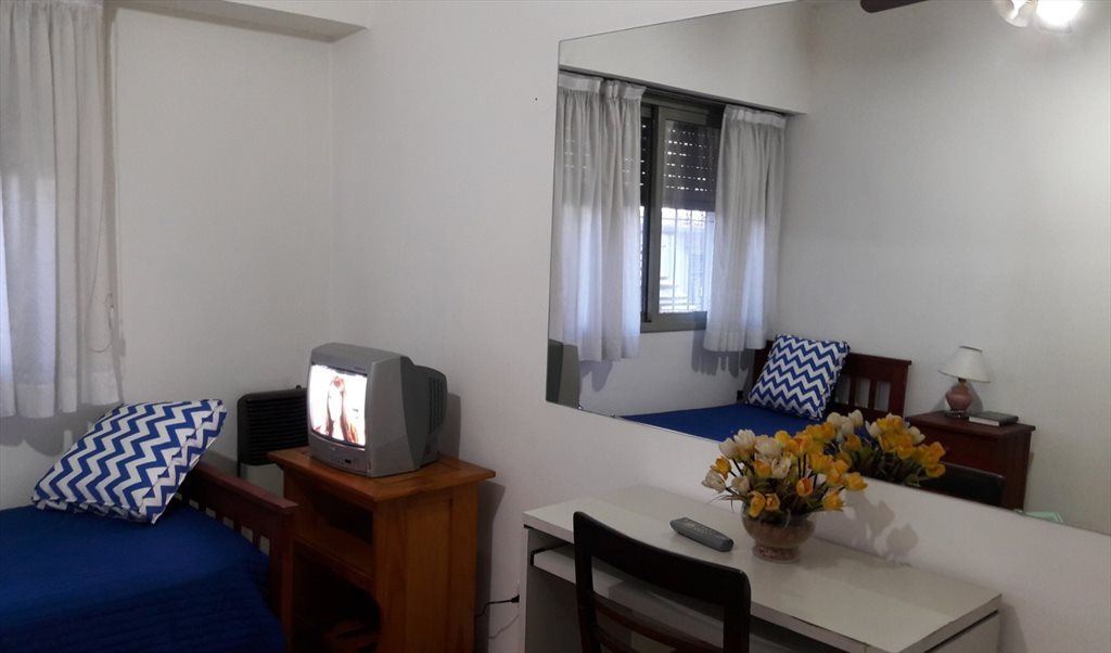 Dispongo de habitaciòn individual, luminosa, a la calle, amueblada, wifi, cable, ventilador de techo, estufa a gas, còmodo placard. Todos los servicios, incluìdos.