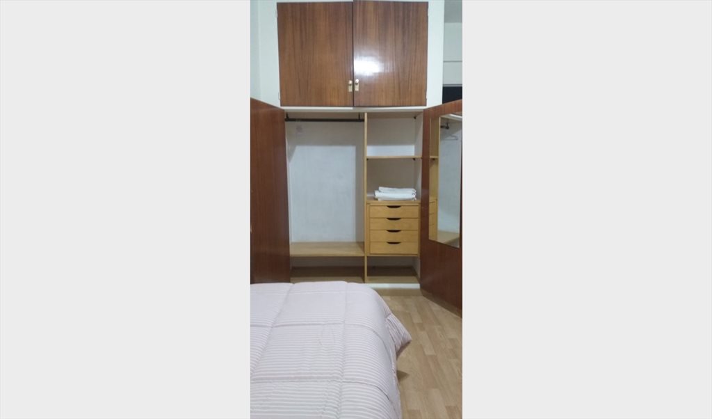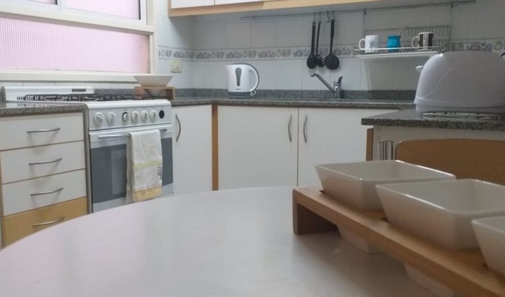 La habitación, al igual que todo el departamento, es muy amplia y luminosa. Cuenta con escritorio, silla, biblioteca, ropero con espejo, sábanas y frazadas, ventilador para el verano, y calefacción para el invierno.