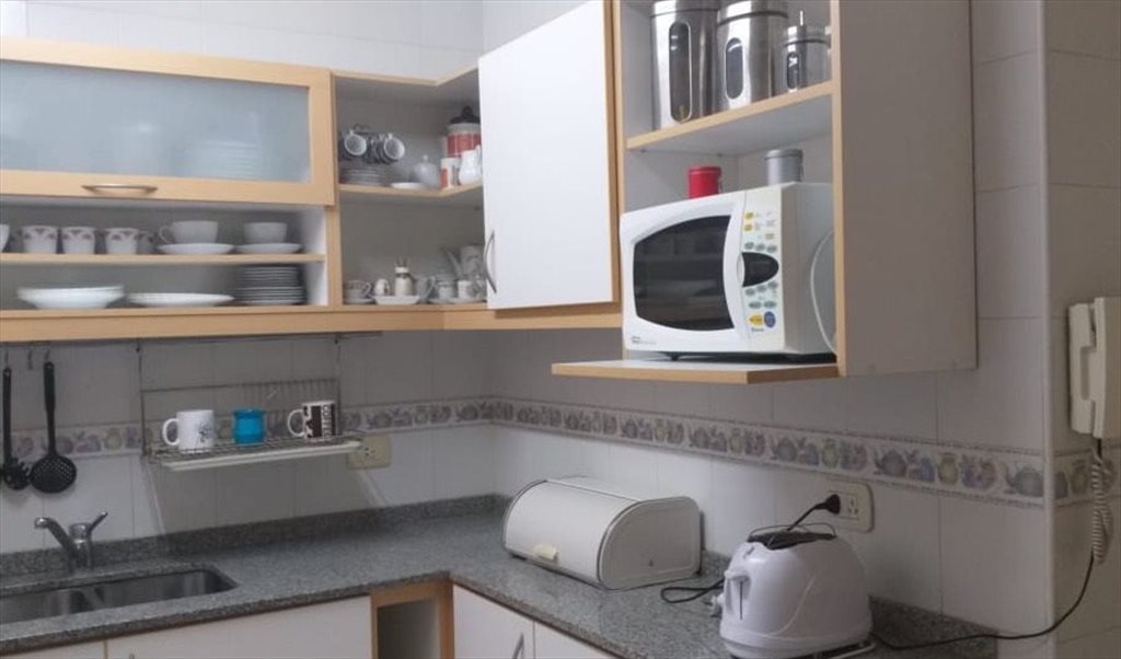 La cocina está bien equipada, hay horno, heladera, cafetera, microondas, minipimer entre otras cosas.