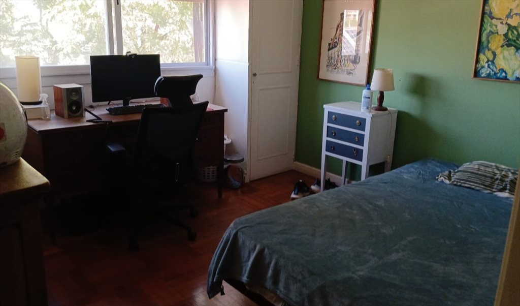 Habitación individual para a estudiante universitario o profesional, mucha luz natural. El Depto. tiene tres habitaciones, dos baños, habitación con ventana doble vidrio, ropa de cama, mesa de luz, escritorio, placar ventilador de techo, wifi, uso de cocina, micro-ondas, lavadero, espacio para guardar alimentos, heladera y congelador. El baño se comparte con una sola persona. En el departamento viven 2 personas, más la que venga; nunca mas de tres en un clima calmo, sociable y de trato amplio. Se pide un uso racional de la energía y cuidado del medio ambiente.