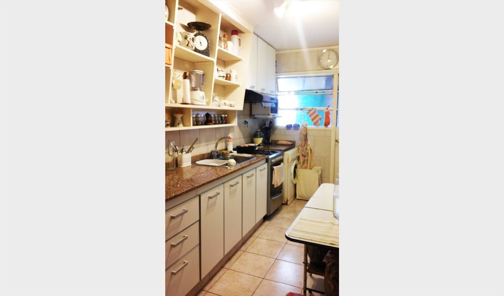 Cocina completa (horno eléctrico/gas, freezeer, microondas) y living compartido. Lavarropas automático y lavadero con tender. Balcón a la calle. Todos los servicios y gastos incluidos (wifi,gas,luz,expensas,etc) Sra Inés.