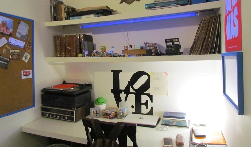 Hola.. Una habitación espaciosa, luminosa con un gran escritorio, gran placard . La casa esta en Palermo Soho a metros de shoping, bares, restaurantes, casas de ropa, etc. a solo 400m del subterraneo y de decenas de buses. Es sin duda el mejor barrio de Buenos Aires. La casa es grande, tiene patio y terraza y mucha independencia ya que las habitaciones y el baño de huéspedes están en planta alta.