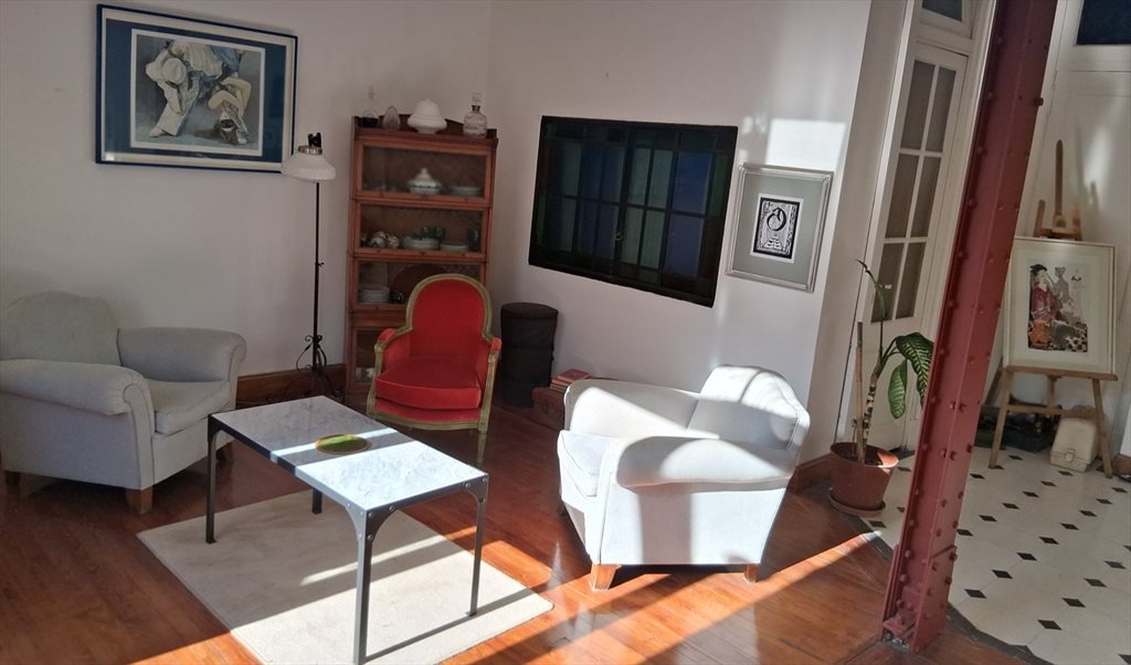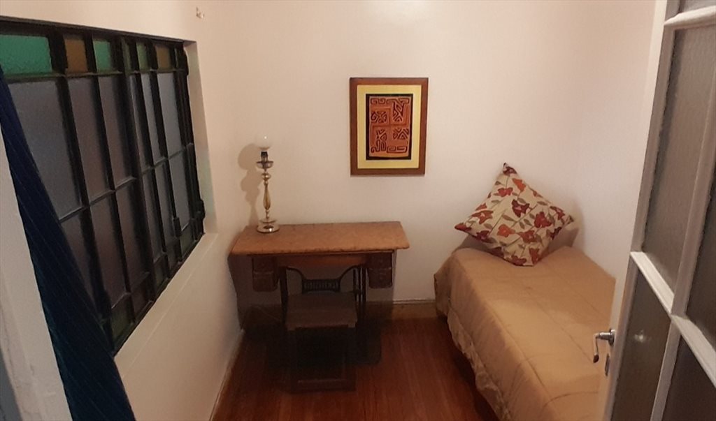 Habitacion con cama single de 30 mts. cuadrados , , privada... Camas, mesa, ropero, estantes , silla. Es una casa de .La dueña vive alli con su espacio aparte . Hay dos baños. Es muy tranquila y cada uno tiene su llave y horarios independientes. Se comparte un baño entre 3 cuartos, cocina comedor donde cocinar y estar, con heladera, cocina a gas, estantes, mesa, etc. y dos salas muy amplias y luminosas que dan a dos balcones a la calle .Wifi en toda la casa .Balcarce, que es tranquila especialmente los fines de semana donde la actividad turistica esta en la calle Defensa. Hay bares, supermercados y una feria de comidas pintoresca y divertida enfrente del edificio todos los sabados de 8 a 14.00 horas. A 5 cuadras de subte Plaza de Mayo, y a una cuadra de colectivos hacia Recoleta y La Boca.Se habla portugues, ingles y frances pero se motiva el castellano. Wifi en toda la casa. Telefono linea control.La propietaria de mediana edad vivio en Brasil, y Europa varios anos, y es traductora de lenguas .Le gusta la cocina, y el intercambio cultural ya que ha viajado por Asia, y Latinomerica tambien. .Hablamos castellano y lo estimulamos .Sabanas, almohadas, cobertores, toallas son provistos en el cuarto.. Por mes : $ 450.000 . Deposito en garantia $ 200.000 -( doscientos mil pesos )= que se