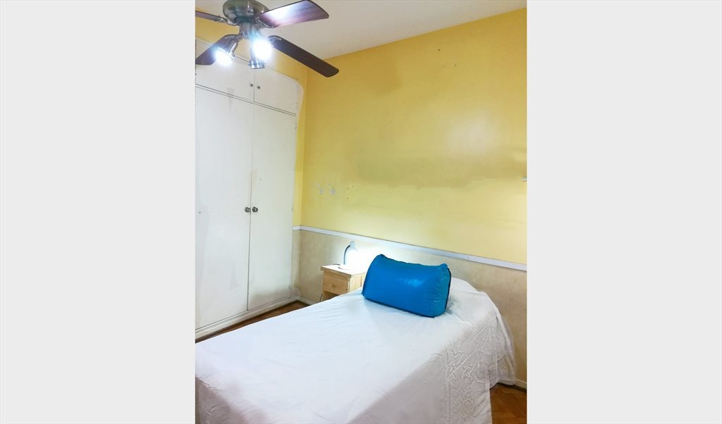 Rent a very bright room with 1 single bed , ceiling fan large, AA, WIFI, large closet, desk,very independent ..