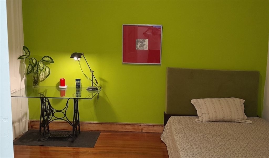 SAN TELMO. HABITACION privada SINGLE CON cama single Twin. . Y superficie de 25 mts. cuadrados amueblada con wifi . y una ventana que da al corredor con vidriado, y , mesa, ropero, estantes , sillas. es una casa de gente que estudia y/o trabaja. Es muy tranquila y cada uno tiene su llave y horarios independientes. Se comparte el baño entre 2 cuartos, ( 2 / personas)cocina comedor donde cocinar y estar, con heladera, cocina , estantes, mesa, etc. y dos salas muy amplias y luminosas que dan a dos balcones a la calle Balcarce, que es tranquila especialmente los fines de semana donde la actividad turistica esta en la calle hay bares, supermercados y una feria de comidas pintoresca y divertida enfrente del edificio todos los sabados de 8 a 14.00 horas. a 5 cuadras de subte plaza de mayo, y a una cuadra de colectivos hacia recoleta y la boca.se habla portugues, ingles y frances pero se motiva el castellano. Wifi en toda la casa. .la propietaria es traductora y viaja con frecuencia y le gusta la cocina, y el intercambio cultural ya que ha vivido en Brasil y Europa. Sabanas, almohadas, cobertores, toallas son provistos en el cuarto. la lavanderia se entrega devuelta limpia al final del contrato ... . Deposito en garantia es 100.000 total / cienmil mil pesos ). Precio por mes ( 1 ) persona $ 800.000.- .( ochocientos mil)