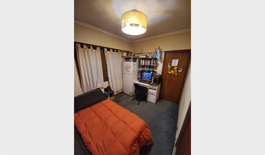 EN LA HABITACION CUENTA CON VENTILADOR, BIBLIOTECA, CALEFACTOR,PLACARD, VENTANA AL PULMON DEL EDIFICIO, COCINA Y BAÑO( A COMPARTIR), SOMMIER DE PLAZA Y MEDIA Y ROPA DE CAMA Y FRAZADAS.