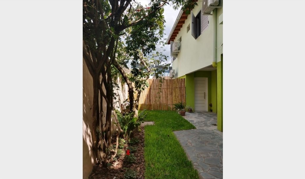La casa tiene un patio y jardín con mucho verde.