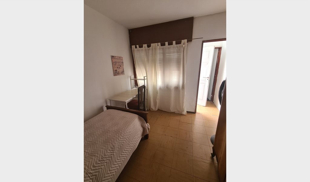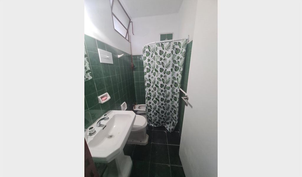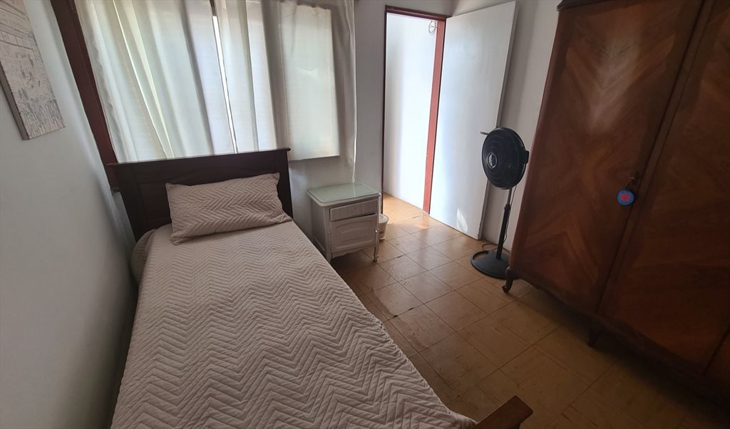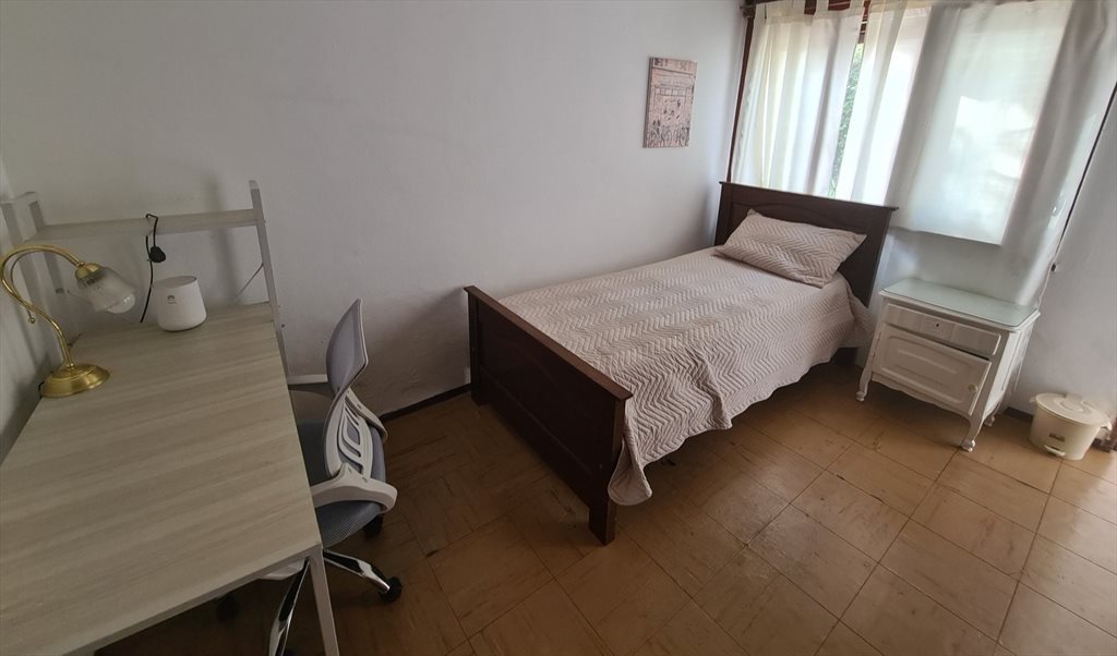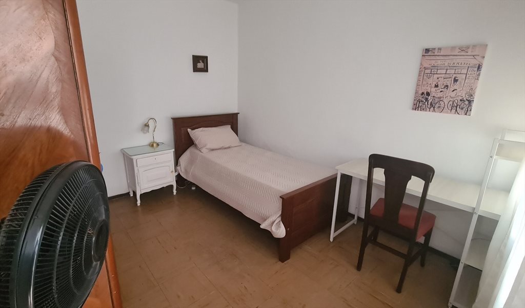 Habitación individual con baño privado para estudiante, en una casa con patio.