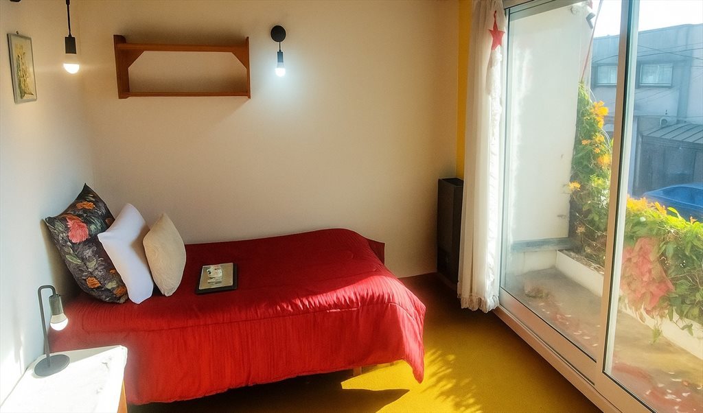 Habitación espaciosa y muy luminosa con BALCON, escritorio, gran placard, estantería, mesa de luz, cama de 1 1/2, almohadas, abrigo de cama, sábanas y tollas. AIRE ACONDICIONADO y calefacción de tiro balanceado a gas, acceso a cocina y baño compartido, heladera de uso común y lavarropas que solo manipulo yo. Hay una perrita en la casa de 14 años.